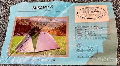 Tenda Bertoni modello igloo 4 posti con veranda. Comoda tenda adatta per le famiglie. Comprende: tenda, copertura apribile anche a veranda, entrata dotata di zanzariere a doppia cerniera. Come nuova, usata due volte. Dimensioni: 220 x 280 x 190 (vedi foto).