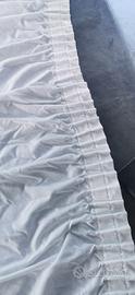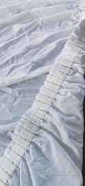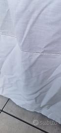 Tenda in cotone pregiato, colore bianco, ricamo quadretti ad intaglio, lavabile in lavatrice sui delicati. Misure cm 130xh255.