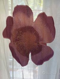 tenda da due pezzi con doppio telo colore bianco e perla con fiore viola. misure 180 per telo altezza 280.