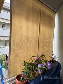 Vendo Tenda da sole a caduta in cotone della ditta Arquati, di colore avorio, da montare sul lato stretto di qualsiasi terrazzo. Le misure sono: Lunghezza CM. 200; Larghezza CM. 170. La tenda è montata su un telaio che è largo CM. 180 e, in caso di vento, viene fissata al terrazzo con due ganci. N.B. La tenda ha bisogno di essere lavata perché internamente è macchiata a causa dell’ usura del tempo. Si trova a Viareggio ed è visibile previo appuntamento. Il Prezzo è dí realizzo: 50 euro. Per qualsiasi informazione potete inviare un sms whatsapp oppure contattare il 348/3025418. Grazie.