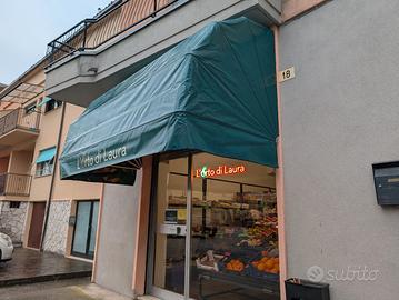 tenda di colore verde impermeabile montata da circa 6 mesi larghezza misura 2254 altezza 3270 la scritta si toglie facilmente