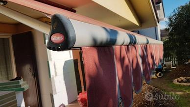 Splendida tenda da sole marca Gibus/Tempotest, in tessuto, misura lungh. mt.3,40 e profondità mt.2,50 color bordeaux con righe grigie, manuale, in perfette condizioni, come nuova. Ottima occasione della migliore marca di tende sul mercato ad prezzo molto contenuto. Solo ritiro acquirente.