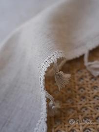 Bellissima tenda con pizzo misura 140 * 300 sm. Il materiale è poliestere però e molto carina e di qualità . Il prezzo non è trattabile, grazie