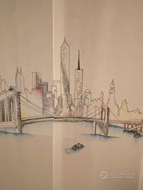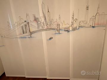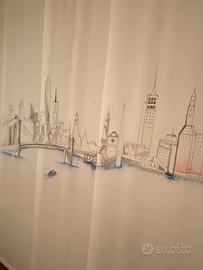 Vendesi tenda in lino Dipinta a mano 4 panneli da 65cm Pezzo unico 1di1 Comprensiva di canalina di scorrimento