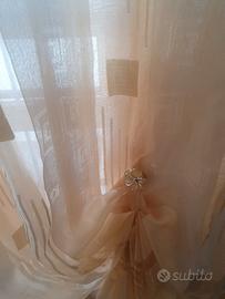 bastone ferro battuto più tenda a doppio velo color oro comprato da dimitex pulsano con aggancio fiori calamita, delicato nuovo