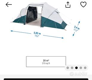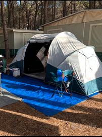 Vendo tenda Arpenaz4.2 fresh&black per 4 persone e due materassi matrimoniali che si gonfiano e si sgonfiano elettricamente. Regalo telo sotto tenda o da utilizzare in zona tavolo.