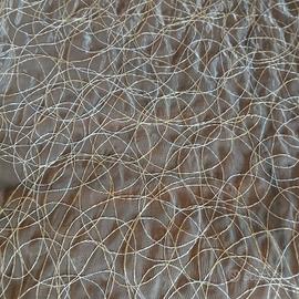 Bellissima tenda a striscie di cotone e organzq ricamata, color beije e lilla, lunga cm 185 e larga cm 100, dotata di laccetti per il fissaggio.
