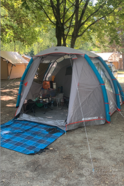Nella camera di questa tenda ci stanno al massimo 4 materassi da 70 cm di larghezza.