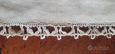Bellissima tenda in lino ricamata ad intaglio, con pizzo eseguito a mano.
