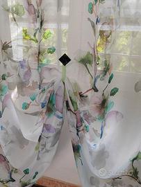 Tenda in m/lino stampata cm. 270x290 con nastro arricciatende nella parte superiore e piombo all'orlo, adatta per bastone o binario fino a cm. 180/200.