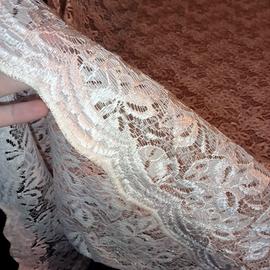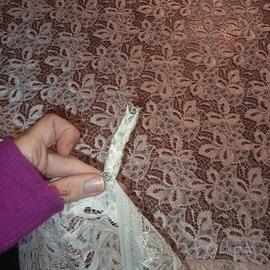 Tenda in pizzo panna, con bottoncini automatici per occhielli bastone. Altezza 254 cm, larghezza 190