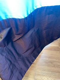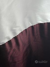 La falda sotto è da un lato tinta prugna cangiante e dall’altro tinta marrine bronzo cangiante.