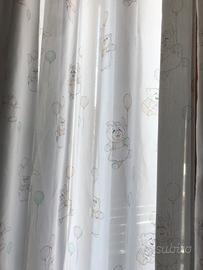 Tenda per cameretta bambini Bianche con disegno tenue orsetti con palloncini . Cucite artigianalmente con ganci. Vendo per rinnovo locali