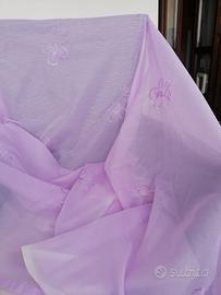 Tenda con asole per bastone in voile. Altezza totale cm. 263, Larghezza cm. 72 e altezza asole cm. 13
