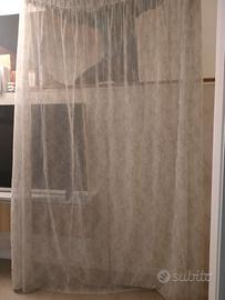 vendo tenda per portafinestra mis. 185X 270 cm.completa di binario in alluminio. La tenda ha la fettuccia con ganci sopra e sotto ha il cordino in piombo. un solo velo