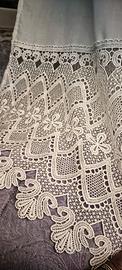 Elegante tenda a due teli misto lino colore avorio con arricciatura superiore, ricamo centrale e orlo in raffinato pizzo macramè. Come nuova, nessun difetto, da ritirare a mano in zona Vomero -Fuorigrotta -Arzano e limitrofe.