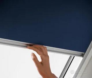 Vendo tenda oscurante, colore blu scuro, manuale per finestra Velux, modello FK06. Usata solo un anno, come nuova, per passaggio a una elettrica. Guide laterali in alluminio spazzolato. Dotata di bastone, per apertura alta. Già smontata.