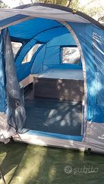 Tenda da campeggio 6 posti letto usata una sola volta,con materasso da 60 cm ,ed cucina 2 fuochi con tenda a parte con sostegno di sotto,ed vari accessori,per inutilizzo vendo.