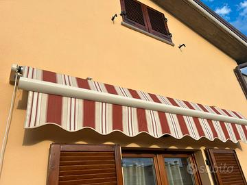 Vendo tenda per balcone con sporgenza larghezza 3,5 mt e profondità 2,6 mt motorizzata + telecomando, tessuto tempotest, la tenda è stata montata a maggio del 2024 e tenuta sigillata durante l’inverno, quindi utilizzata pochissimo. Solo ritiro zona Arezzo
