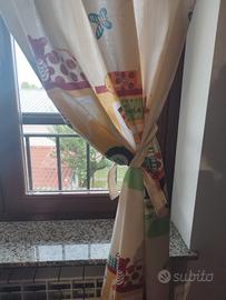 Tenda cotone fantasia per cameretta bambini. misure: 2 pezzi da 130x180 con anelli in stesso tessuto Come nuova.