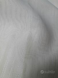 Vendo Tenda ,tessuto leggero che lascia filtrare la luce ma che garantisce la privacy in tinta unita colore neutro, a renderla elegante sottili fili laminati che donano luminosità.