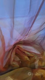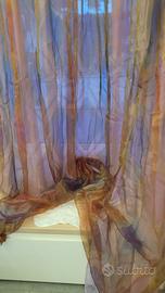 Tenda in chiffon dai colori tenui glicine, corallo, arcobaleno delicato. Fatta fare su misura di ottima qualità e materiale. Completa di 17 ganci bianchi in plastica e 17 anelli in metallo.