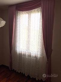 Tenda (160 larg - altezza 290) con centrale in pizzo di Calais e laterali in raso , compketa di supporti a soffitto