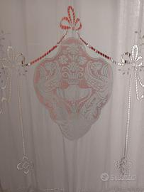 bellissime tende puro lino, ricamate a mano con applicazione uncinetto a mano mantovane stoffa Busatti regalo bastoni a due ferro battuto valore più di 2000 vendo ad un piccolo prezzo per trasloco