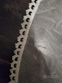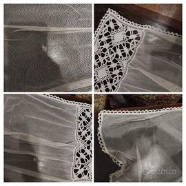 Singola tenda in tulle e tombolo color ecru, risalente agli anni'40- '50-'60(propendo più per gli anni' 50).tenda bellissima, introvabile oggi in tulle, la tenda ha però un rammendo, come ben visibile in fotografia, fatto sicuramente per coprire un buco(di quale entità non so:io l'ho comprata così questa tenda) e ha un piccolo buco verso il fondo, visibile nell'ultima fotografia.per il resto la tenda è in ottime condizioni. Il prezzo che propongo tiene conto della rarità dell'oggetto e delle condizioni in cui si trova(rammendo e buchino). Le misure:88 centimetri altezza, 48 centimetri lunghezza. Senza imballaggio originale