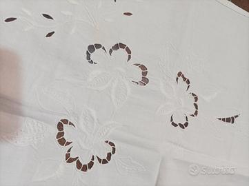Tenda singola ricamata a mano. cotone bianco. misura 77 x 46