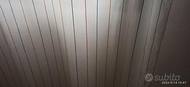 Tenda chiara con righe verticali colorate come da foto esposte, bellissimo filato, acquistata presso le Manifatture lombarde a Trento, con possibilità di varie modifiche sia in lunghezza che in larghezza con possibilità di avere ulteriore tessuto che ho a disposizione (ulteriori tende di varie misure. Visibile a Trento nord in casa privata, posso comunque consegnare anche a Levico terme oltre che a Trento nord