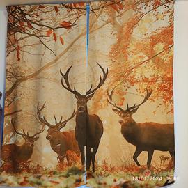 Euro 30 senza binario, con binario 70 euro. Ho 2 binari stessa lunghezza e 2 tende: come vedete dalle foto, una con raffigurato la notte e l'altra con dei cervi. stessa grandezza. contattatemi per ulteriori informazioni.