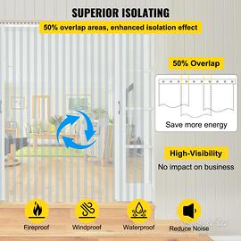 · Design Trasparente: queste tende a strisce hanno un'alta visibilità, sono comode da vedere e non influenzeranno negativamente la tua attività. Inoltre, garantisce che le operazioni si svolgano senza intoppi con maggiore sicurezza e alta efficienza.