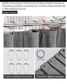 Tenda vasca o doccia. Tessuto waffle. Rinforzi in fondo. Misure 90*184. Tessuto morbido non si attacca al corpo e resistente alle pieghe. Ganci inclusi