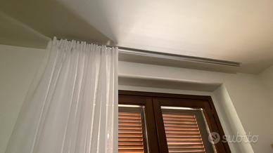 Causa trasloco, vendo tende da soggiorno/camera da letto, color bianco. Quasi nuove, ampie con abbondante arricciatura. Binario in alluminio lungo 2,5 m, altezza 2,70 m.