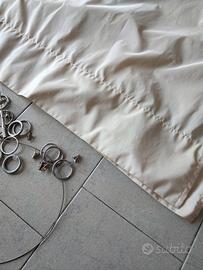 tendaggio ideale per camera o sala larghezza 2,70 m , altezza 2,60, colore avorio panna tessuto lucido ,completo di filo acciaio con i suoi anelli per appenderla