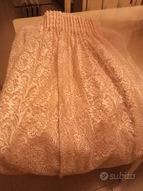 in ottime condizioni è di colore rosa in pizzo ha già arriccia tenda x bastoni all'americana altezza 290 centimetri larghezza 470 centimetri ha smerlo sul fondo vendo x trasloco