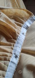 3 teli di tende color ocra di cotone come da foto . dimensioni cm. 285 x 85 con orlo di 16 cm. Attacco con fettuccia e automatici in quanto erano attaccate a cassonetto non a bastone .Si possono mettere attacchi ad elefantino o anelle a piacimento. Sono inclusi anche 2 pomoli in legno decirstivi e per facilitare il tiraggio. Disponibile per chiarimenti grazie.