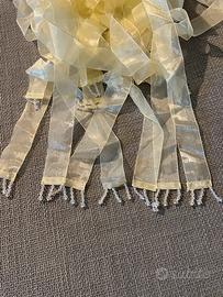 Numero 2 tende cm 110 altezza cm222; frange cm4 con perline alla base. color giallo paglierino. Mai utilizzate