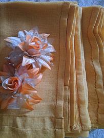Coppia tende a vetro in cotone giallo con bordi rifiniti a mano a punto giorno. Mai usate cm 260 x 100
