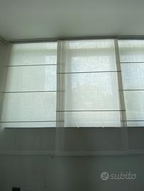 Vendo tende di lino bianche a pannelli. Sono distribuite su due binari della lunghezza di 3,70 m. Le tende misurano 1 m per 1,77 m di altezza. Tutte le tende anno all’interno il supporto di alluminio. C’è la possibilità anche di accorciare il binario. Molto belle e pratiche da togliere per lavarle. Se interessati mando altre foto e disponibile per la visione. Regalo tende oscuranti basta aggiungere un altro binario.
