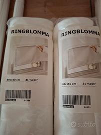 Tende a pacchetto RINGBLOMMA ikea in resistente poliestere. Il tessuto bianco facile da abbinare filtra la luce e dona freschezza alla stanza. Si alzano/abbassano con calamite. Lavabili e ideali in qualsiasi ambiente, compresi cucina e bagno.