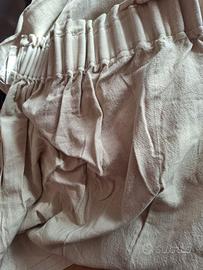 Tessuto conistente e non trasparente color ècru o sabbia.con ganci già installati.