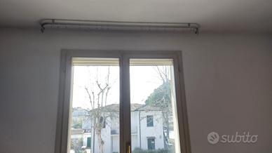 vendo binario tenda in alluminio , attacco a soffitto , completo con tende/tendine in viscosa verdi con fettuccia arancio
