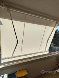 Vendo n°2 tende da balcone con telo tempotest, la più grande con i bracci e arrotolatore, la piccola pendente con arrotolatore e bloccaggio. Misure riportate su foto colore panna