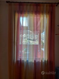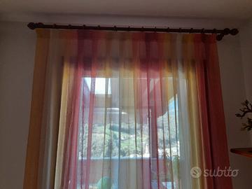 Buongiorno, vendo tende fatte in sartoria, colore sfumato come da foto,complete di paletti di legno e anelli ..molto belle.