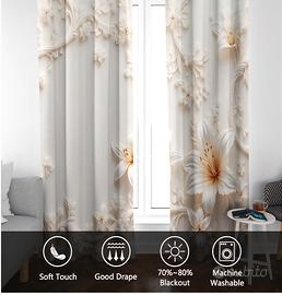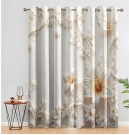 Tende per Interni Bianchi Fiori, L 140 x A 280 cm 2 Pezzi - Tende Oscuranti Europeo Elegante Floreale, Finestre Camera da Letto Soggiorno, Arredamento Casa, con Occhielli SZ&65