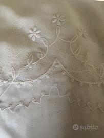 n.2 tende 2.93x3 circa eleganti colore bianco trasparente con bordo inferiore ricamato a macchina la parte superiore ha già il suo bordo per appendere che non è della misura di 3 mt. Sono applicate alcune farfalle di tipo pizzo.