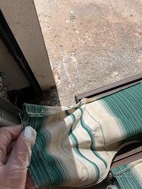 Tende da sole complete di bastoni per il dispiego e braccetti di ancoraggio.