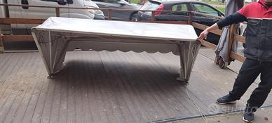 vendo come da foto due cappottine/tende da sole impermeabili color grigio chiaro cerate in ottimo stato la piccola è larga 76 cm euro 200 la grande è larga 240 cm . euro 400 non si spedisce